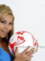 Set de fotos con la voluptuosa bailarina peruana Mirella Mendez en topless y con la camiseta del Sporting Cristal